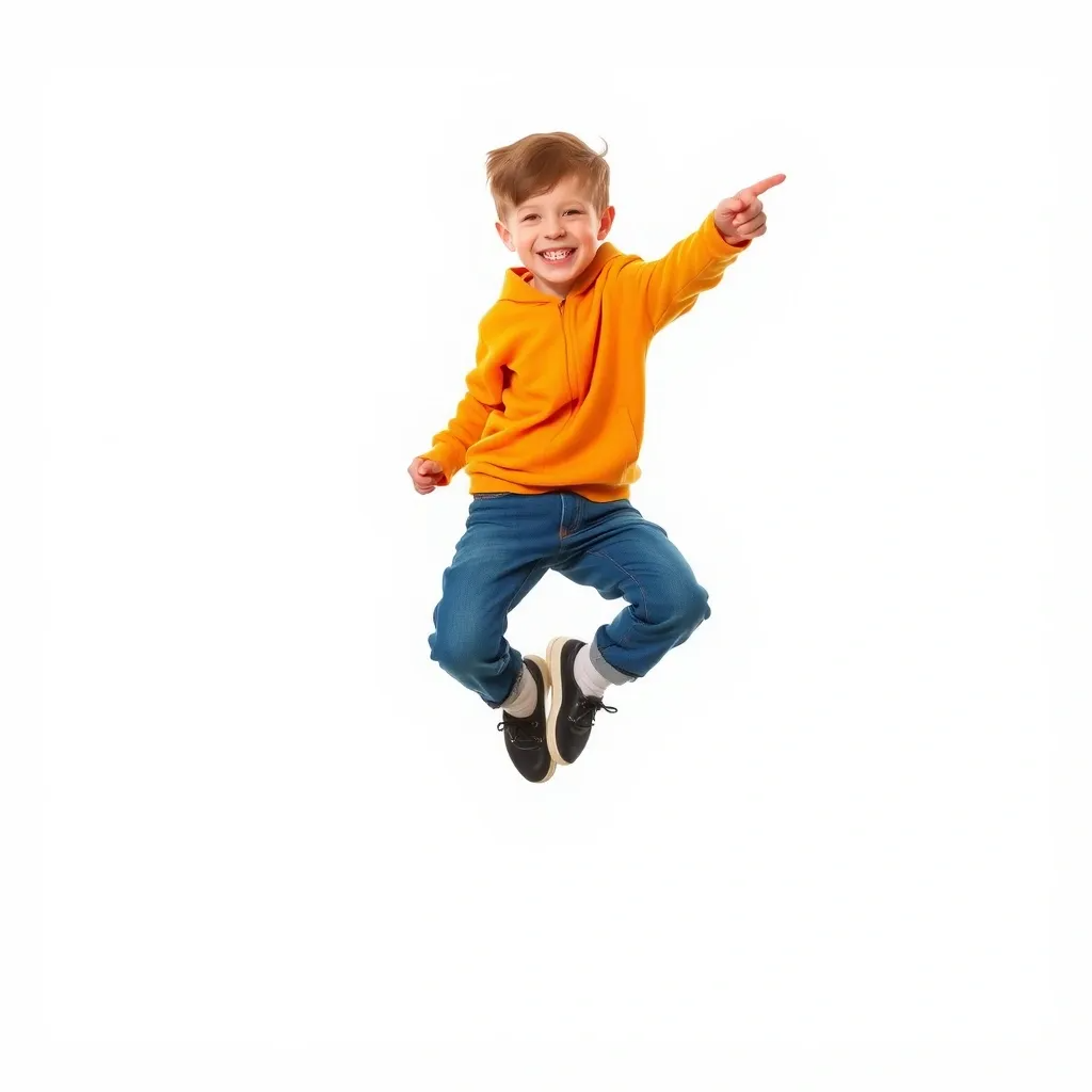 (Deute mit dem Zeigefinger und hüpfe zehnmal mit beiden Beinen in die Luft. Während des Hüpfens sage ganz leise, nur zu dir,